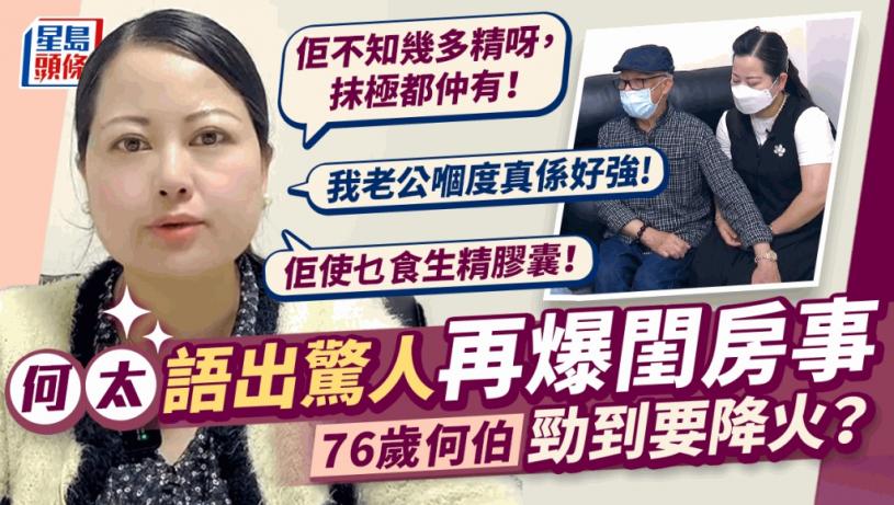 76歲何伯與年輕逾30歲的何太因接受《東張西望》訪問而「成名」,何伯與何太早前更多次直播爆家事,更十足網紅般於社交平台分享夫妻生活。但近來何伯與何太熱度似乎減退,不少網民都好奇二人是否再有「新招」!而何太近日又語出驚人大爆閨房事,成功再引起網民關注。