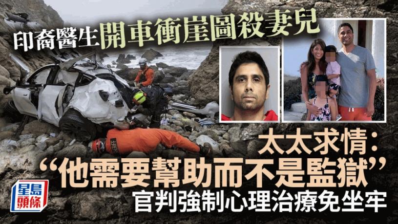 美國一名南加州印裔醫生去年1月駕駛汽車,連同車上妻兒一家4口衝落懸崖,被控謀殺未遂,高等法院一名法官周四裁定他有資格參加心理健康轉送計劃,無需入獄。如果他能完成該計劃,相關刑事指控將被撤銷。