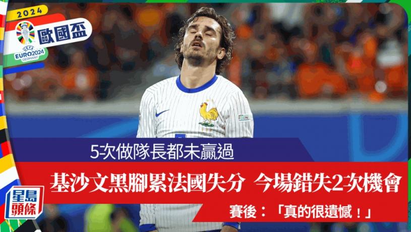 法國在周五歐洲國家盃D組次輪對荷蘭時,沒有安排「爆鼻」的前鋒基利安麥巴比出場,其隊長臂章交予另一位鋒將基沙文。然而後者未能扮演領袖的角色,今場錯失黃金機會連累球隊賽和0:0之餘,成為隊長更變身黑腳,歷來5次以隊長身份帶領法國出戰只得3和2負的劣績。