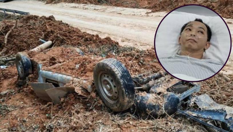 曾忠華心有餘悸地回憶:自己的身體隨著車輛翻了幾圈,鼻口也被沖刷下來的泥沙堵住,難以呼吸,心想自己可能要沒命了。