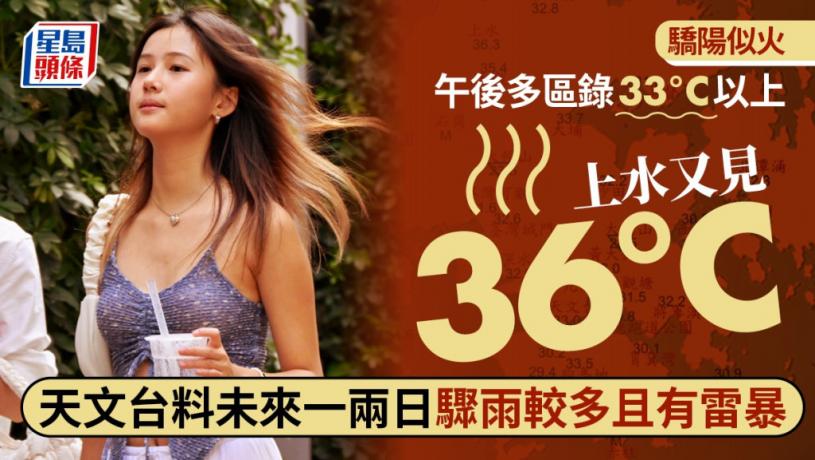 下午3時半,天文台總部、大埔、元朗、黃大仙、跑馬地等均錄得氣溫33°C或以上,上水更錄風36.3°C。鍾健華攝