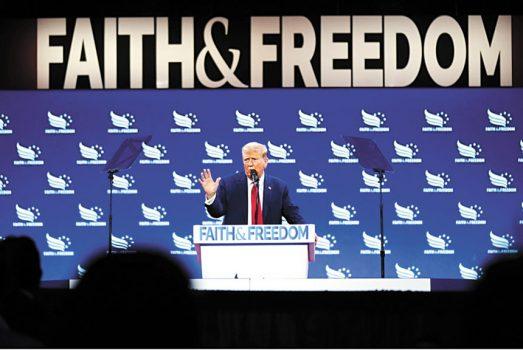 前總統特朗普前往首都華盛頓,出席宗教與自由聯盟(Faith & Freedom Coalition)年度會議。政壇相信,特朗普希望藉此鞏固基督教福音派選票,而其中的重點就是墮胎議題,特朗普曾多次表明,這項爭議應留給各州自決,但福音派希望聯邦頒布禁令,因此雙方存在一些分歧。