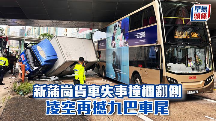 新蒲崗發生交通意外。今日(25日)早上8時14分,一輛密斗貨車沿太子道東往觀塘方向行駛,當駛至太子道東638號Mikiki商場對出時,失事撞向路邊鐵欄。貨車繼而向左翻側,凌空再撞一輛雙層九巴的車尾。幸貨車司機僅受輕傷,意外原因有待調查。