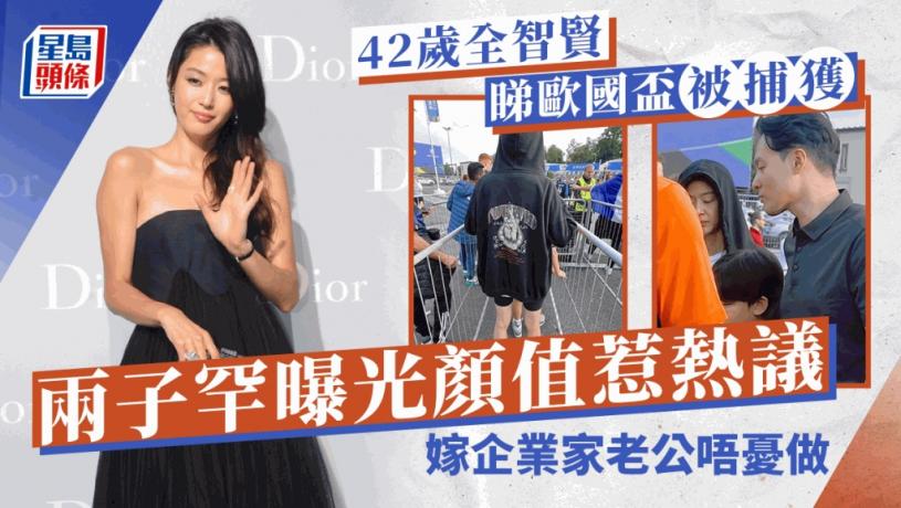 韓國女星42歲全智賢當年憑電影《我的野蠻女友》,在亞洲造成轟動,2013年與金秀賢合作韓劇《來自星星的你》,為她登上事業高峰。全智賢與企業家老公崔俊赫結婚12年,兩子分別8歲及6歲,全智賢一直對兩個囝囝好保護,小朋友甚少曝光,不過近日有網民在德國歐國盃會場偶遇全智賢一家四口,意外公開全智賢兩子容貌。