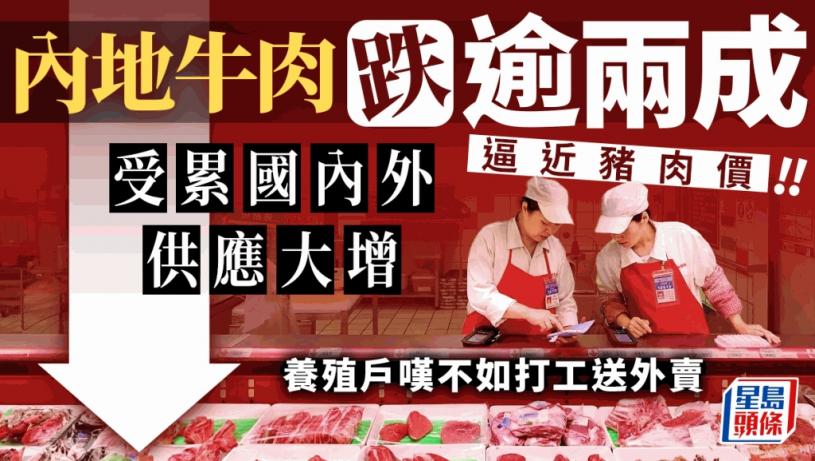 報道指出,北京海淀區一家永輝超市的鮮牛肉價格為每斤29元(人民幣下同),而附近豬肉檔的精品鮮切五花肉亦要每斤24元。至於批發市場的牛肉價格更低,基本上都是「2字頭」,其中北京新發地市場一位商戶表示,現時牛肉價格每公斤24元,比年初下降了6、7元,亦即累跌逾兩成。