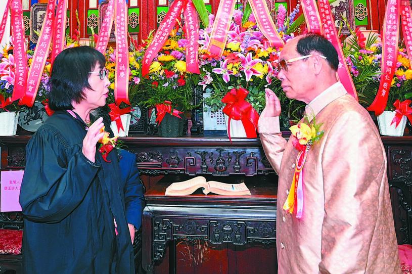 在中領館總領事張建敏主持監交下,新任總董楊國興從滿任總董雷華欽手中接過印信,履新上任;在鄧孟詩法官主持監誓下,新任總董楊國興宣誓就職,為中華總會館掌舵。