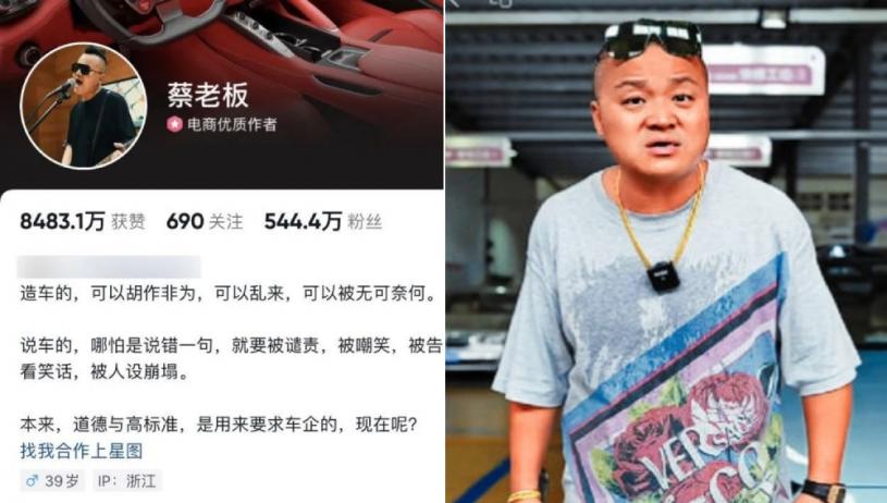 去年底,網信辦通報一批破壞營商網絡環境的典型案例,「蔡老闆」多個帳號登榜。今年1月,蔡甲還被判向理想汽車登報道歉,並須賠償22150元。