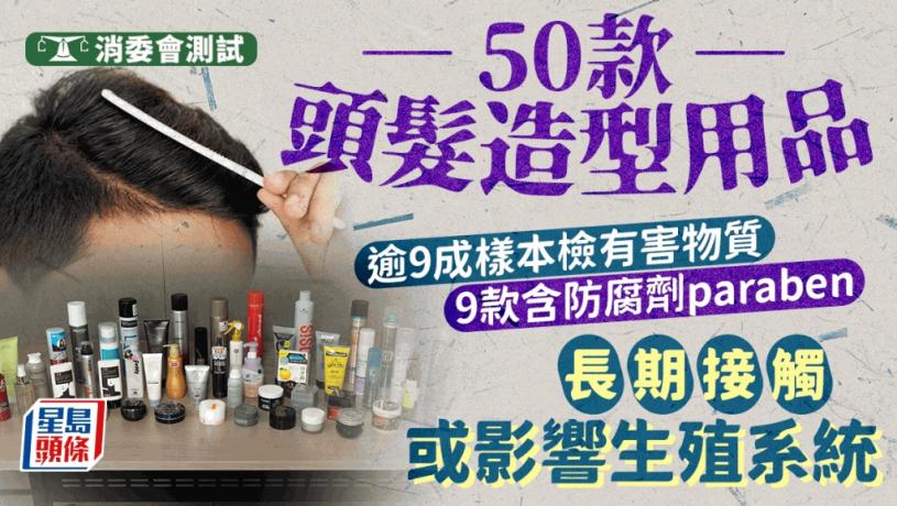 想髮型達到理想效果,市民通常會用不同種類頭髮造型用品,以便打造出不同髮型迎合不同場合需要。消委會測試市面上50款頭髮造型用品,每件價錢由$30至$650,發現逾九成樣本檢出有害物質,當中4款樣本檢出歐盟禁用、會引致生殖毒性的香料致敏物質鈴蘭醛(BMHCA),另有10款樣本檢出歐盟及內地限制使用的防腐劑(MIT及/或parabens)。3款樣本檢出的揮發性有機化合物(VOC)含量已達到或超出本港法例規定上限。