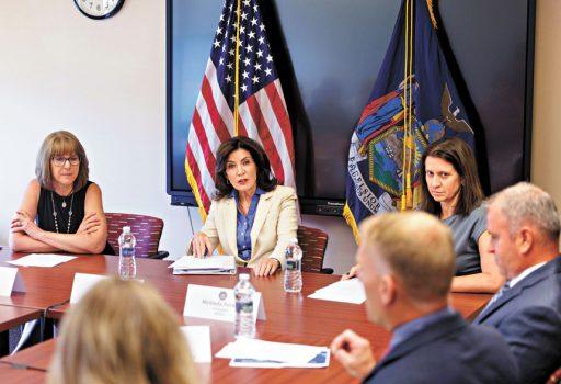 她於15日上午在奧本尼郊區吉爾德蘭高中(Guilderland High School)的教育工作者圓桌討論後對記者說,「有時,當你達成某件事時,把問題責怪州長會更容易。」
