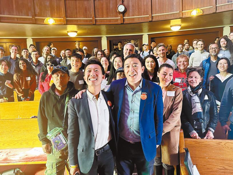 三藩市市參事會第11區市參事候選人賴天宸(Michael Lai),獲曾競逐總統提名的華裔參選人楊安澤(Andrew Yang)背書站台,周一下午在Ingleside社區中心召開爐邊談話。