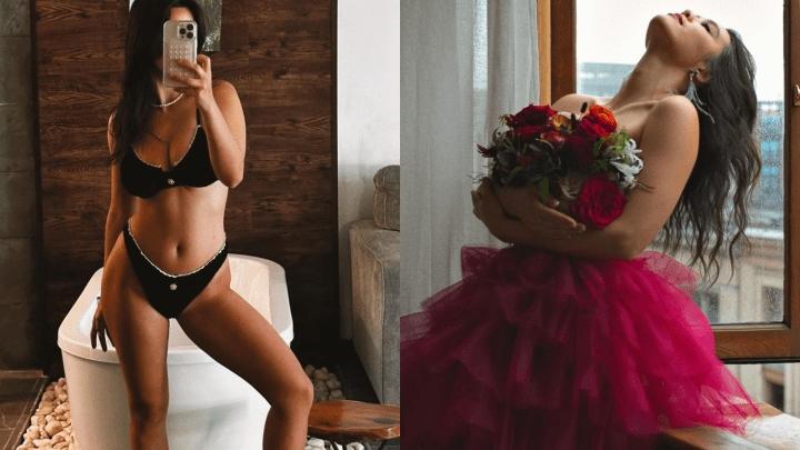 現年53歲的鍾麗緹是90年代性感女神的代表人物之一,其26歲大女張敏鈞(Yasmine)盡得媽媽真傳,樣靚身材正,還遺傳了逼爆上圍。2021年Yasmine女承母業選美,參加《溫哥華華裔小姐競選》成功獲得亞軍。昨日(15日)Yasmine又在IG派性感福利圖,她身穿一條超deep V的啡色吊帶裙,極為吸睛。