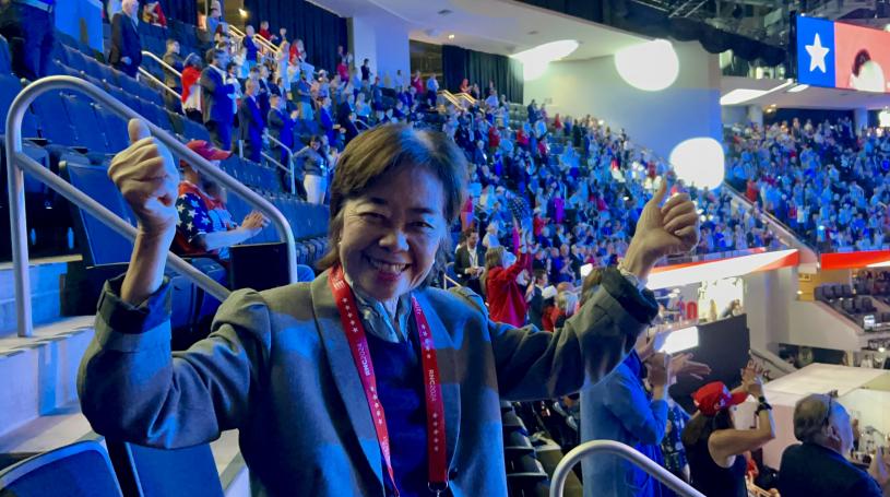 前美國教育部助理副部長、前美國勞工部美西總長,現南加州大學教授張曼君(Marina Man-Chun Tse)去現場參加了本次活動,做為堅定而長期的共和黨人,她表示,當天場內來了近5萬觀眾,現場到處是熱情澎湃、高喊口號的支持者,人心振奮,共和黨的大團結也達到最高峰。