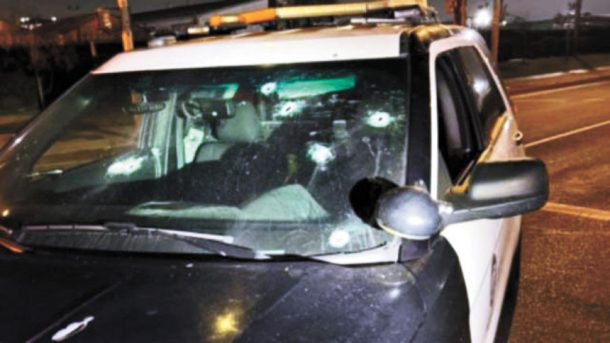洛杉磯警方的巡邏車遭凶猛火力攻擊。洛市警局