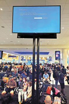 周四晚起全球出現微軟系統當機問題,航空公司和機場首當其衝。洛杉磯國際機場的旅客面對漫長的航班延誤和取消,通宵滯留機場,只有找地方小睡一會兒,甚至睡在地上,有些人把行李當作枕頭。