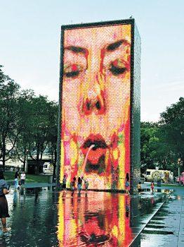 位於密芝根大道靠近夢露街的皇冠噴泉(Crown Fountain)是芝加哥著名地標之一、也是民眾與遊客必到之勝地。2004年7月啟用,是互動式公共藝術,由加泰尼亞藝術家約姆普朗薩設計,造價超過1700萬美元