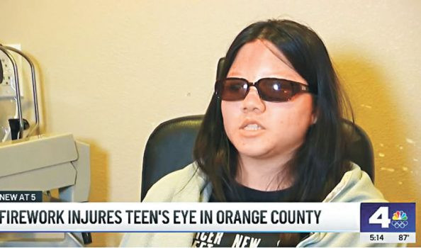 NBC 4電視新聞報道,18歲剛高中畢業的金泰勒(Taylor Kim)於7月4日國慶聚會上遭煙火直接射入左眼,她擔心會因此失明。
