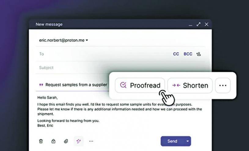 端對端電郵服務Proton Mail獲得一項新人工智能(AI)功能Proton Scribe。這是一位AI寫作助理,幫助用戶撰寫和整理郵件,有助這項服務追上谷歌和微軟電郵AI功能的推出速度。
