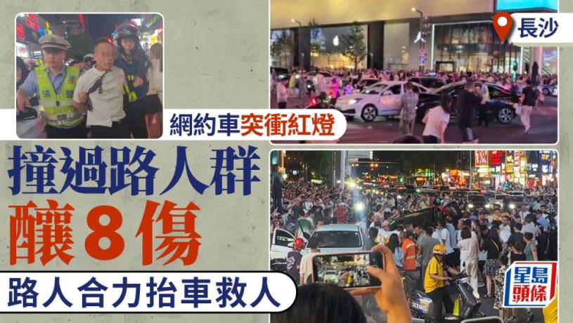 湖南長沙昨晚(21日)發生嚴重車禍,一輛網約車疑因司機分神清理後座物品,導致車輛失控衝紅燈,撞上過馬路人群,導致8人受傷,當中2人重傷,有民眾被捲入車底,路人自發合力抬車救人。
