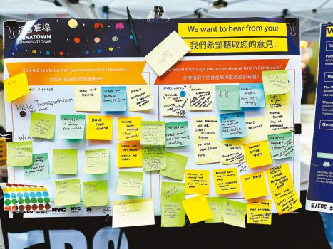 21日,市政府攜手多個社區機構在華埠唐人街設立宣傳牌,向過往民眾介紹「通達華埠」(Chinatown Connections)計劃,並徵集公眾意見,探討如何發展華埠以吸引更多人駐足停留。