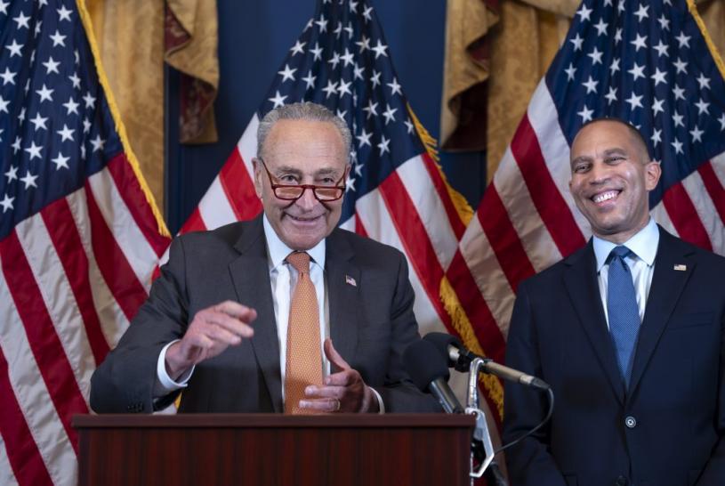 參議院多數黨領袖舒默和眾議院民主黨領袖傑弗里斯表態支持賀錦麗。美聯社