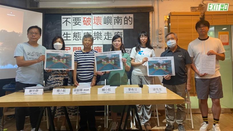 發展局土木工程拓展署5月28日提出「南大嶼生態康樂走廊的研究建議」並進行2個月諮詢。守護大嶼聯盟、南大嶼水牛學會等團體及當區居民今天(24日)指「諮詢不夠開放及全面」,形容當局「借生態之名行破壞之實」,聲言「不要破壞嶼南生態的康樂走廊」。