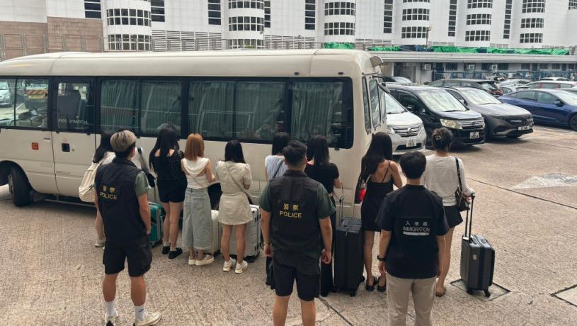 行動中,人員拘捕23名內地女子、一名內地男子及一名非華裔女子,年齡介乎16歲至59歲。他們分別涉嫌「違反逗留條件」、「逾期居留」、「行使虛假文書」及「未得授權在香港接受僱傭工作」。所有被捕人現正被扣留調查,案件將交由相關部門跟進。