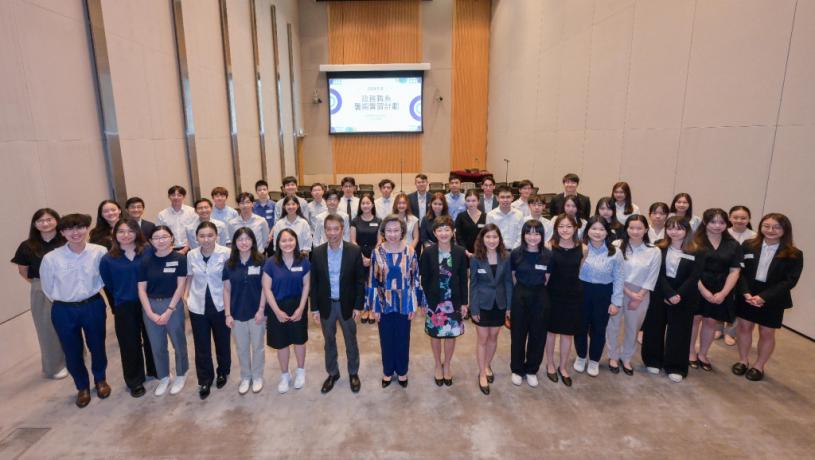 公務員事務局局長楊何蓓茵今日(1日)與參加政務職系暑期實習計劃的約40多名大學生聚首一堂,聆聽他們分享實習感想和工作體驗,並鼓勵他們投考政務主任工作。