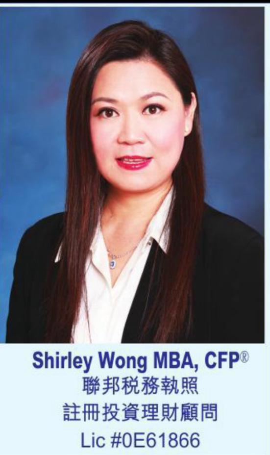 黃小姐有二十多年的投資及理財規劃經驗,曾在AXA Advisors,Citi Bank等大型金融機構擔任資深理財顧問。她同時擁有MBA金融碩士學位,也是美國CFP協會認證的註冊理財規劃師(CFP)及註冊投資顧問,此外還擁有國稅局註冊稅務執照,及各類保險執照(年金、人壽、長期護理、醫療、商業、房屋、財產、勞工等)。黃小姐及其團隊聯合灣區資深精算師,會計師,律師團隊致力於為客戶提供一站式個性化財務規劃服務,協助客戶實現資產增值,優化稅務,實現最大化實際收益。黃小姐及其團隊精通英語,國語,粵語等多種語言,想要錢景無憂,請馬上致電650-731-4428或415-420-0232,或電郵至[email protected]預約諮詢。