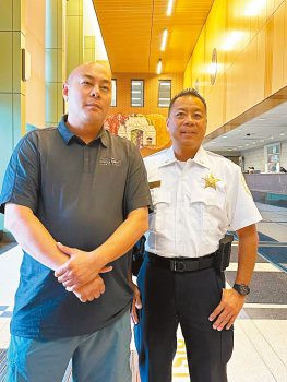 麥健富局長(右)與華埠治安互助隊鄧克勤(左)等隊員,是多年互相扶持的好朋友。 梁敏育攝
