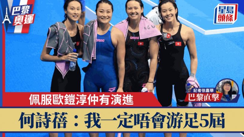 香港女子4X100混合泳接力隊,雖然在周六的初賽列第7位,未能晉身複賽,但4位分別為第1、2、3、5屆亮相奧運的女將都表示滿意;何詩蓓揚言不會像歐鎧淳一樣游足5屆,而歐鎧淳則表示會永遠都記住為香港出賽的感覺。香港游泳隊今屆賽事已全部完成。