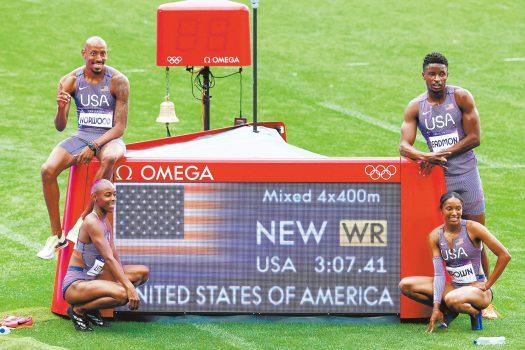 美國田徑隊在巴黎奧運的4X400混合接力賽的預賽中,跑出了3分07.41秒成績,改寫世界紀錄。他們此前在2023年布達佩斯世界錦標賽上,寫下3分08.80秒紀錄。