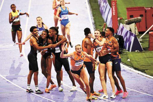 田徑男女混合4×400米接力決賽上演驚天大逆轉!預賽創造3分07秒41新世界紀錄的美國隊在最後階段遭荷蘭名將波爾逆轉,穩穩的金牌變成銀牌。