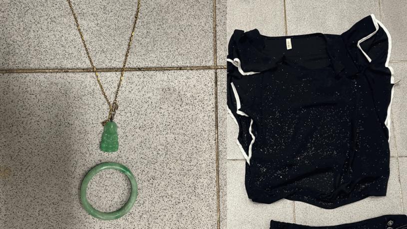 事主左手戴有一隻玉鐲及頸上戴有一條連玉墜的金項鍊。警方提供