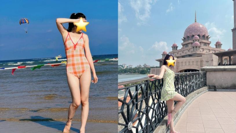 從照片中可以看到,李蘊身穿橙色格仔圖案的一件式泳衣,展現出她修長白皙的雙腿和漂亮的背部線條。在另一組綠色泳衣的照片中,V領的設計更凸顯了她的好身材。除了一件式泳衣,李蘊還換上了比堅尼造型並留言:「再不記錄下來,就真的老了,趁還有那一點點青春。」可見她在露台上擺出各種pose,大秀完美身材,網民們紛紛讚歎她依然保養得宜,狀態完全看不出已為人母的樣子!