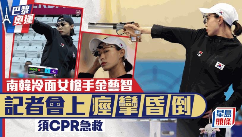 南韓31歲射擊女選手金藝智在2024巴黎奧運賽場單手插袋有型開槍的模樣爆紅,也在10米氣手槍項目摘下銀牌。她本周返回南韓,今日上午傳出在記者會上突然痙攣後昏倒,經CPR搶救恢復意識,隨後送院。