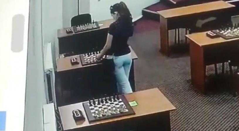 IN080824D2-1 阿巴卡羅娃在棋盤下毒。社交平台Telegram影片截圖
