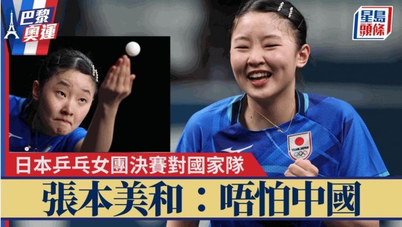 日本乒乓女隊於巴黎奧運女團準決賽以3:1淘汰德國,繼倫敦奧運之後,事隔12年再闖女團決賽,將與奧運乒乓女團史上未曾落敗的國家隊爭奪金牌。張本美和賽後豪言不害怕中國隊!