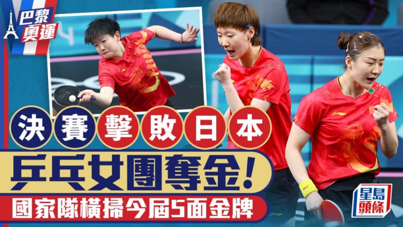 國家乒乓球隊完成5金大滿貫,在今晚的女子團體決賽,以總場數3:0擊敗日本摘下金牌,完成乒乓球5面金牌最後一塊拼圖,國家隊今屆巴黎奧運第37金到手了!
