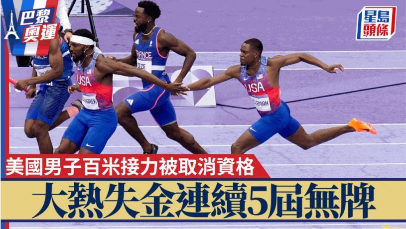 周五巴黎奧運男子4X100米跑接力決賽,金牌熱門美國再次大熱倒灶,因交接棒違規被取消資格,局然連續5屆奧運在此項目都沒有獎牌落袋,金牌則由加拿大奪得。交棒失誤的高文賽後直言失望,但承認或許可以練得更好。