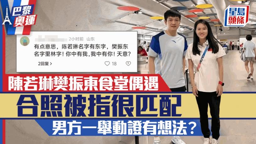 近日,中國跳水界的傳奇人物陳若琳與中國乒乓球的領軍人物樊振東,在一次偶然的機會下,於奧運村的食堂相遇並留下了合影。這張照片迅速在網上瘋傳,引發了網民們的熱烈討論與美好祝願,由於兩人都未婚,網民覺得二人「好襯」,不少網民都建議二人「在一起」!
