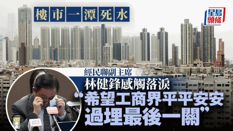 林健鋒在記者會期間更流下男兒淚,指行業自2019年捱過不少時間,一直希望可以為香港復甦出一分力,形容「如果捱了這麼多年,去到這個時刻不可以繼續為香港作出貢獻是很可惜的!」他指不能讓樓市一潭死水,直言「工商借貸不活,香港很多東西都不會活。」