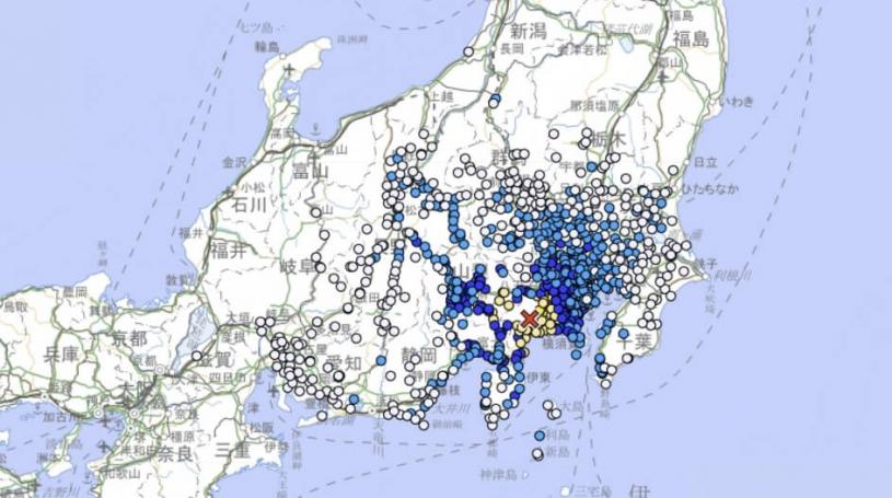 神奈川縣厚木市、中井町、松田町、清川村偵測到震度5弱(日本震級);埼玉縣所澤市、東京都町田市、國分寺市,以及神奈川縣和山梨縣多地,包括富士河口湖町偵測到震度4。