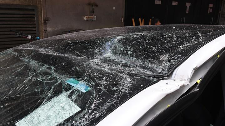 今(9日)午3時左右,灣仔譚臣道5至11號一塊石屎從高墮下,擊中停泊路面兩部車輛,包括其中一部Tesla電動車。警方接報趕抵,證實石屎從13樓簷篷脫下,幸無人受傷,兩車損毀嚴重,分別頂部凹陷及車窗爆裂,大廈樓層的窗口式冷氣機亦被石屎撞毀。消防員奉召到場,升起雲梯移除有危險的冷氣機。