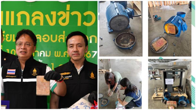 提拉表示,泰國海關與相關部門合作,成功阻止2起試走私毒品出境的案件。其中要運往台灣的貨品申報為3台絞肉機和製作肉丸的機器。經檢查發現,在其中2台絞肉機的馬達內藏有海洛因,總重量為11.8公斤。