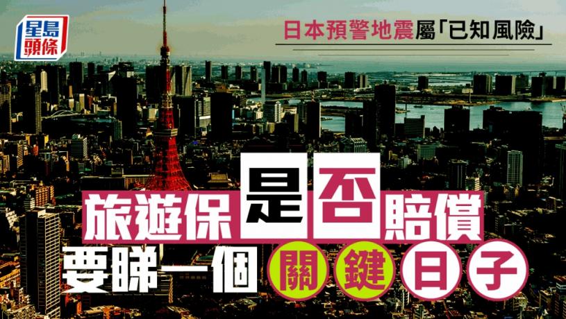 日本宮崎縣近海早前發生7.1級地震,當地氣象廳在8月8日發布「南海海槽地震臨時資訊(注意巨大地震)」,警告要對地震保持警戒。港府周一表示,鑑於日本當局向日本部分地區發出巨大地震預警,提醒身在日本或計劃前赴日本的港人要提高警惕。 《星島頭條》向保險公司查詢,有保險公司指,若在日本發出地震警示後投保旅遊保險,並在日本旅遊時遇上地震,由於地震屬「已知風險」,旅遊保險將不會承保地震相關風險,亦有個別公司指就今次事件作特別處理,承保有關風險。
