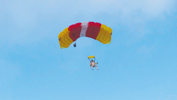 跳傘表演也有令人驚歎的演出。 梁敏育攝