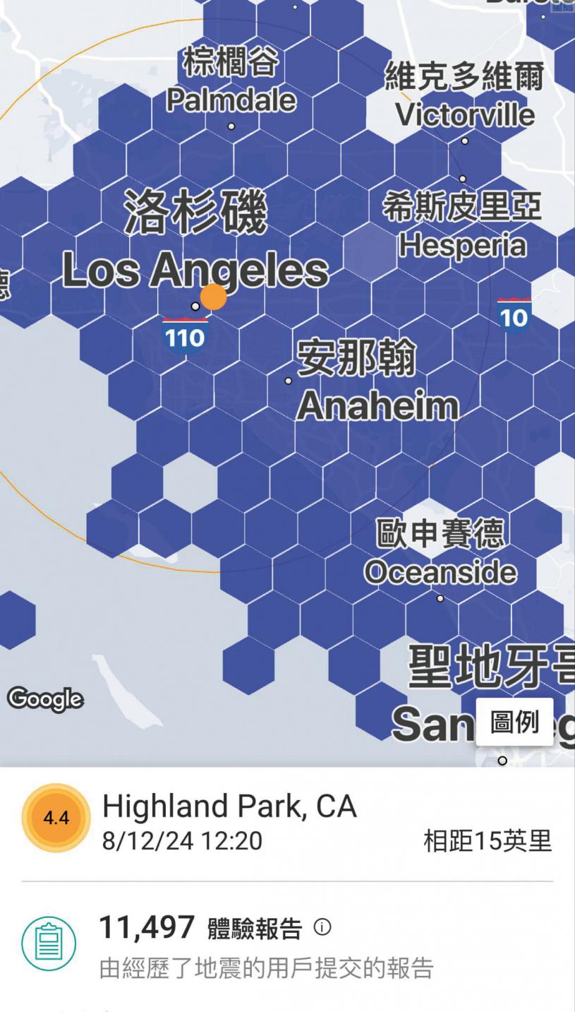 加州政府提醒民眾下載地震警報系統「MyShake」手機應用程式,這是美國第一個公開的全州警報系統,可以在人類感覺到地震之前檢測到地震,讓居民有關鍵幾秒鐘時間來躲避。據「MyShake」顯示,週一中午的地震發生時,APP即時向用戶發出了地震警告,共有超過1萬多位用戶提交了地震報道。洛杉磯訊