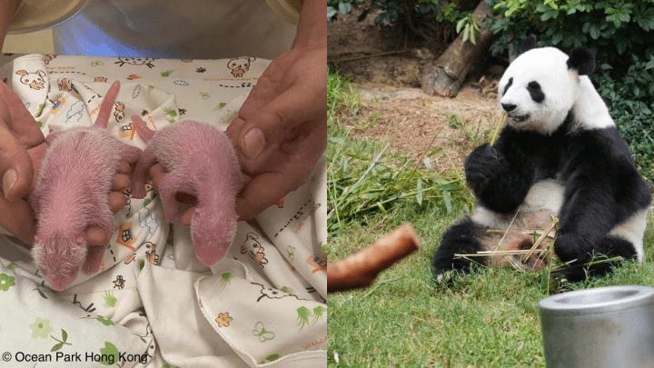大熊貓「盈盈」和「樂樂」經過自然交配,成功誕下一對龍鳳胎。海洋公園fb
