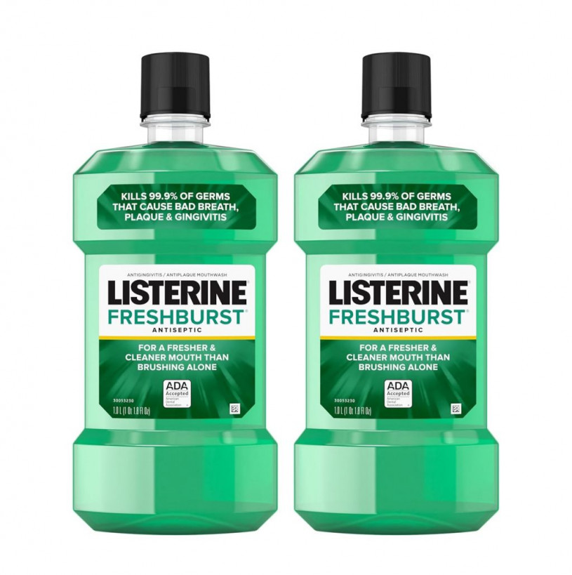 Listerine Freshburst 抗菌漱口水 是專為清新口氣和改善口腔健康設計的產品。此款漱口水含有強效配方,能有效殺死99%的引起口臭的細菌,同時有助於預防牙菌斑和牙齦炎。經美國牙科協會(ADA)認可,其清涼薄荷口味讓口氣保持清新,提供全方位的口腔保護。每瓶容量1升,兩瓶裝,適合日常使用,讓你輕鬆保持口腔潔淨與健康。