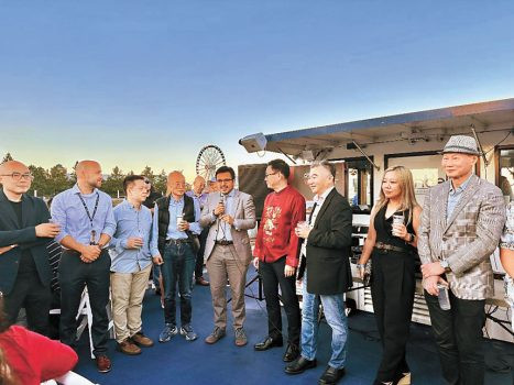 會長李健明致辭歡迎所有嘉賓的蒞臨,他稱,一年一度的遊船美食會,感謝得到董事安德魯贊助船只,也獲得唐人街多家不同風味的餐館提供美味的食物,感謝所有人熱情參與和支持;並在中秋佳節即將降臨之際,與眾人分享象征月圓人團圓的月餅、精美可口的乳酪蛋糕等美食。